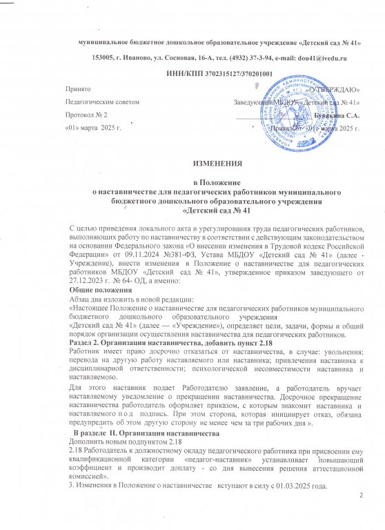 Положение о системе наставничества МБДОУ "Детский сад №41" от 26.12.2022 г.